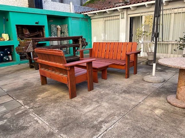 Patio al aire libre con parrillero, ideal como área de descanso o recreación.