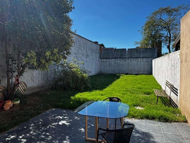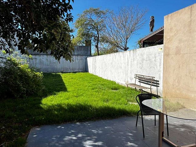 Desde el área social se accede a un gran fondo verde, ideal para disfrutar al aire libre, con parrillero.